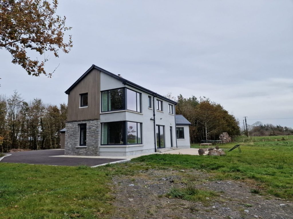 Key features of this house includes triple glazed windows and doors, precast flooring, underfloor heating, air to water heat pump and is fully airtight to achieve maximum energy ratings.